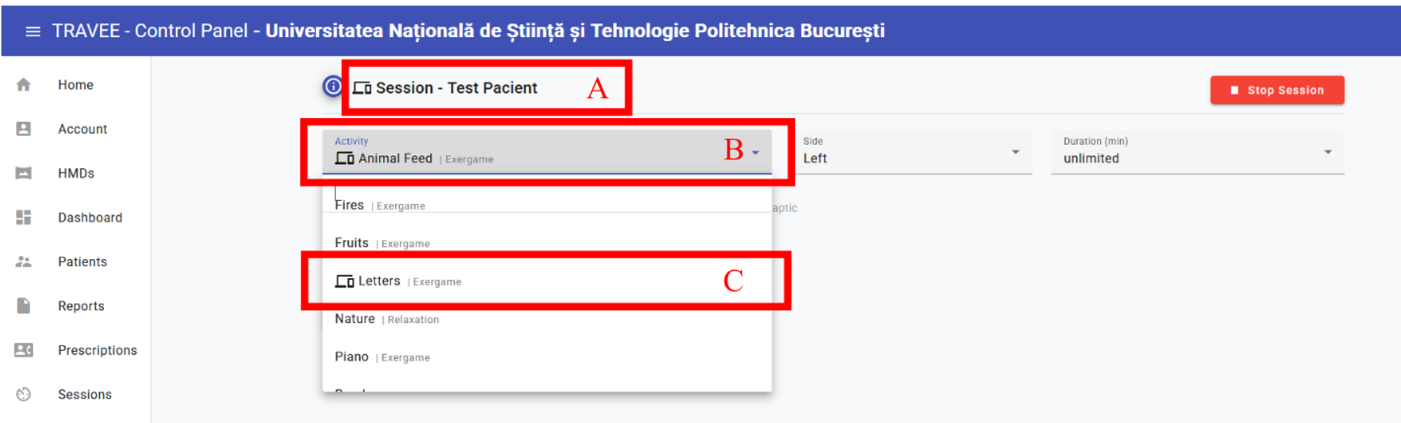 - Improvement of the web panel for assisting recovery sessions: within the current project, multiple improvements were made to the Web panel from the TRAVEE project
